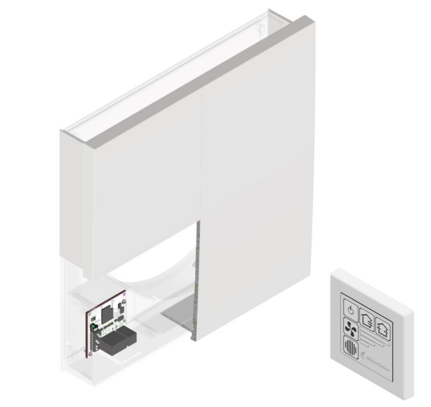De besturing zelf wordt aangesloten op 220V (stopcontact) en zet deze spanning om naar 12V voor de voeding van de ventilator. Er is dus altijd een kabel nodig tussen de besturing en de unit(s).