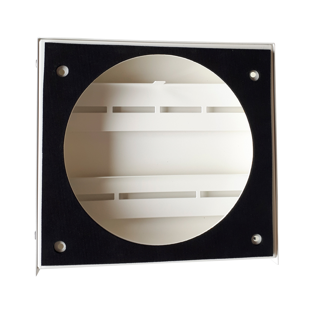 Design buitenkap voor diverse MoveAir modellen. Verkrijgbaar in antracietgrijs (RAL7016) en wit (RAL9010). Afmetingen: 200 x 210 x 30 mm. Voorzien van egalisatiemat.